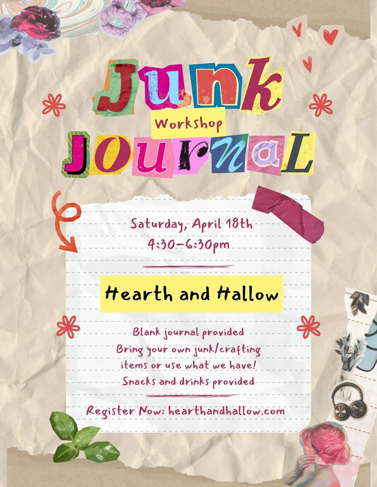 We’ll provide blank journals to get you started—just bring your favorite “junk” (magazine clippings, old notes, photos, stickers, random bits you love), or dig into our stash of supplies. Not sure where to start? We’ve got thoughtful prompts to guide you (especially for our fellow overthinkers 😉).
